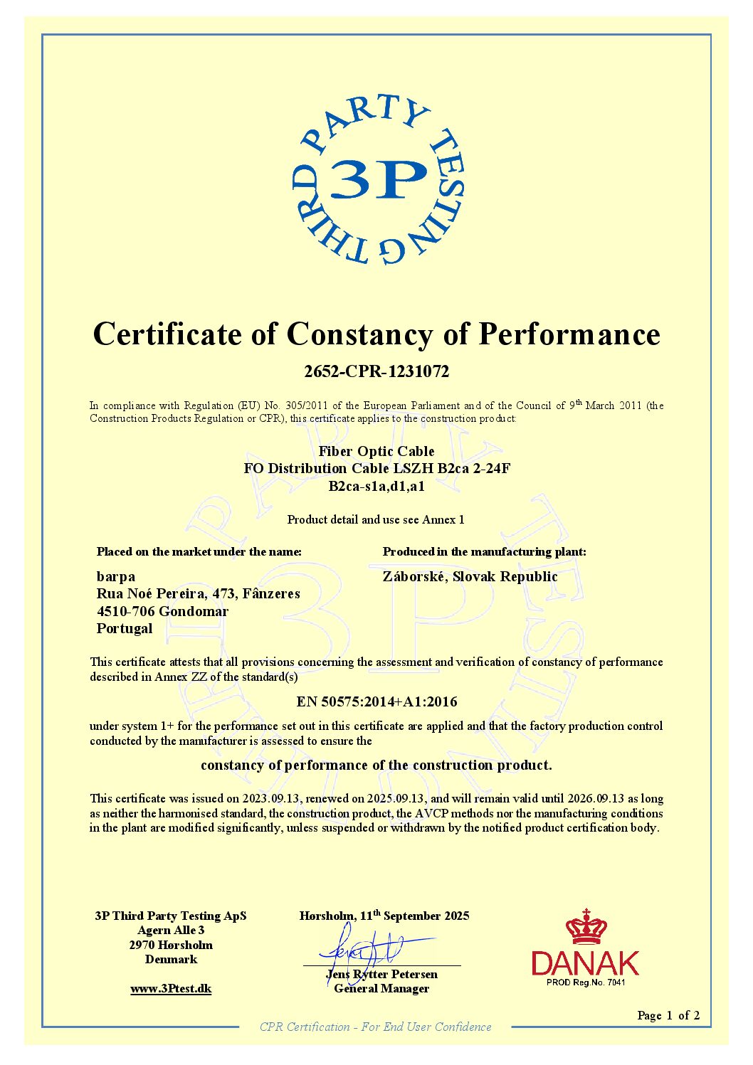 Juin 21, 2024 Câble de Distribution B2ca – LSZH – Certificat de Constante de Performance barpaadminuser
