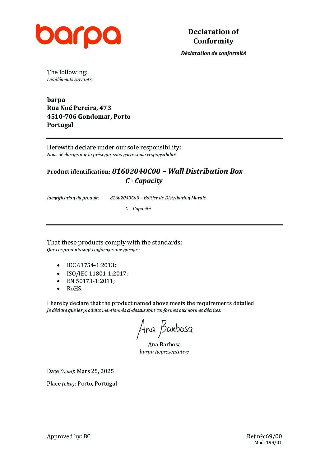 Juin 25, 2024 Boîtier de Distribution Séparateur à Fixation Murale – Déclaration de Conformité barpaadminuser