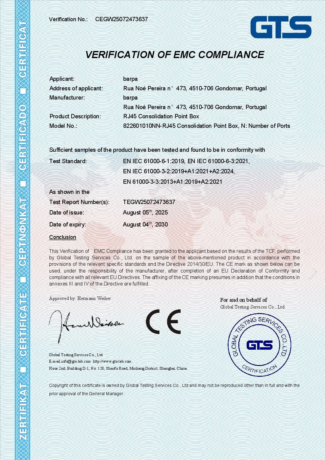 Boîte de Point de Consolidation – RJ45 – Vérification de la Conformité EMC