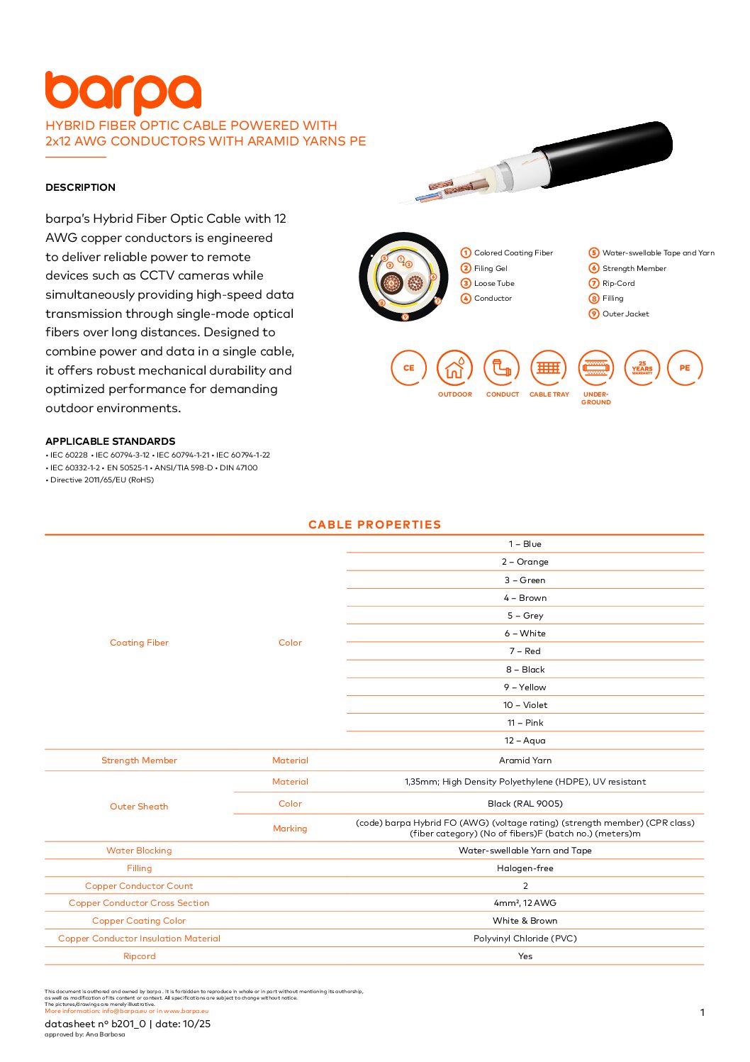 Câble Hybride 2×12 AWG Aramide – PE – Fiche Technique